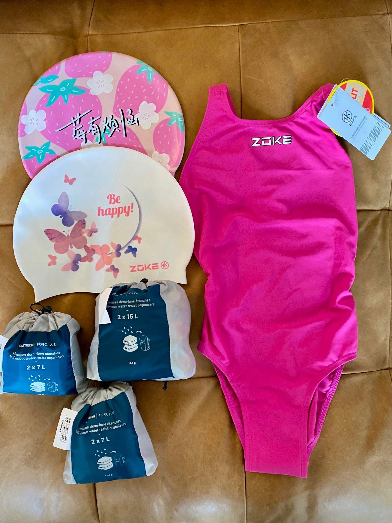 2 Zoke swim caps.